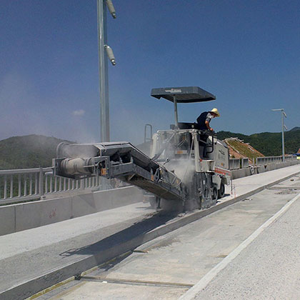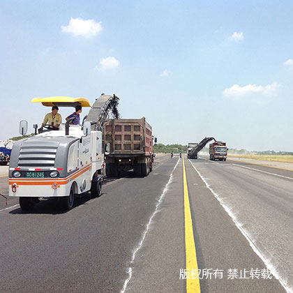 A:極小的銑刨半徑,行駛速度高達(dá)8km/h,右后輪可擺動,狹窄區(qū)域施工時便于貼邊銑刨。